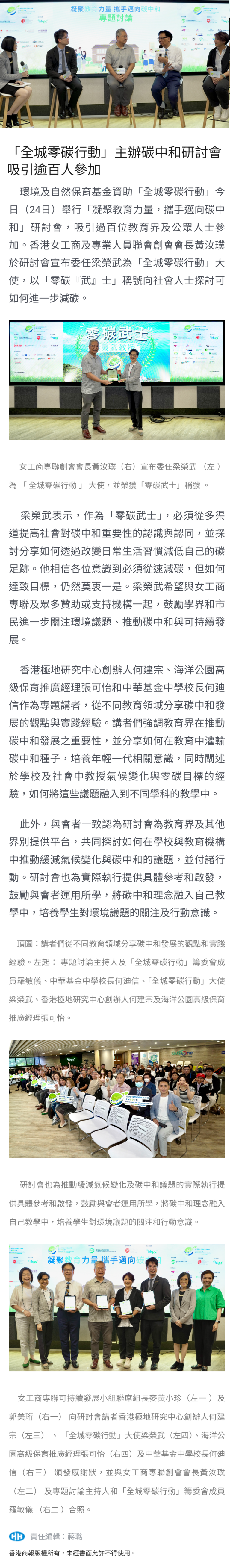 經濟通 (2023/11/24) 極端天氣影響嚴重 減碳生活刻不容緩 環境及自然保育基金資助女工商專聯推出全城零碳行動